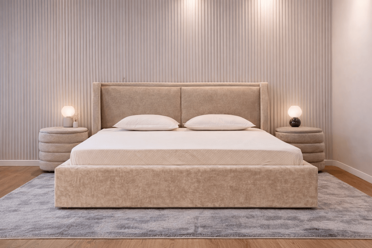 Upgrade your bedroom with this elegant modern upholstered bed, designed with a soft padded headboard and premium velvet fabric. A perfect blend of comfort, durability, and contemporary style for luxury living spaces in the UAE.
